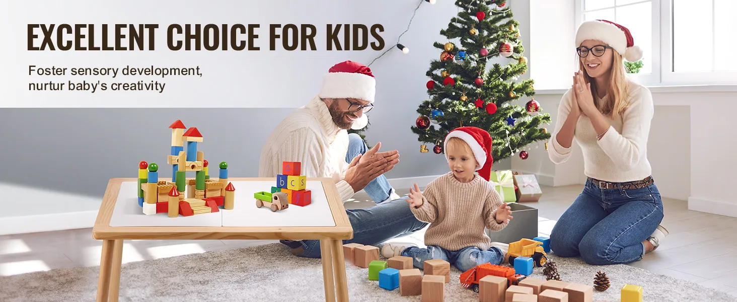 Onze speeltafel is een ideaal cadeau voor feesten zoals verjaardagen, Kerstmis, Thanksgiving en nog veel meer. Kinderen kunnen aan tafel deelnemen aan verschillende activiteiten, waardoor aan hun leer- en speelbehoeften wordt voldaan.