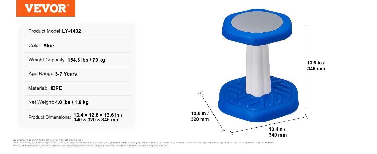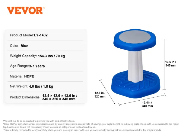 VEVOR Kids Wobble Chair, Active Chair with Sponge Cushion, Wobble Stool Improves Focus, Posture and Calm Children, Ideal for Schools and Preschools, Age 3-7, Blue