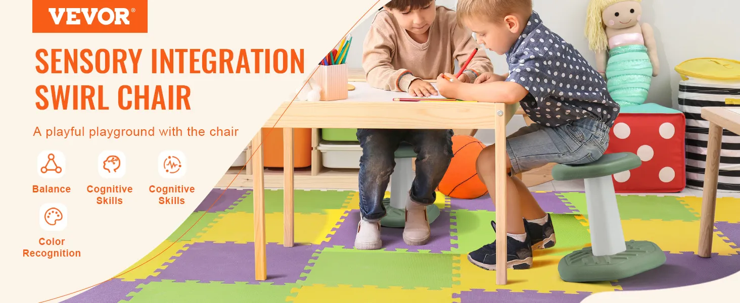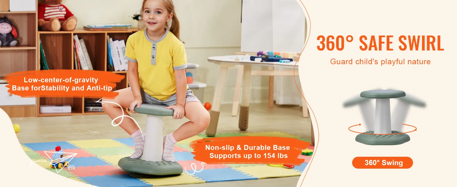 360° Swivel Design: With its 360° swivel feature, kids can move and play while seated or gently tilt forward during learning activities. This fun, dynamic design prevents slouching and promotes proper posture, strengthening core and back muscles.