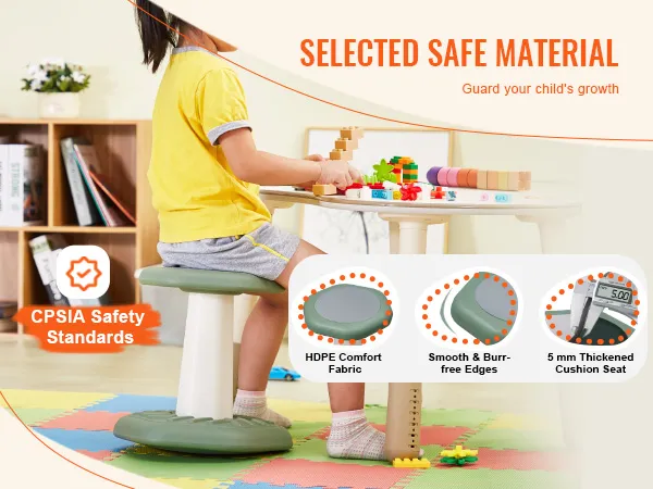 Built for Safety: Your child's safety is our top priority. Made from high-quality, CPSIA-certified HDPE material, this wobble stool features smooth, burr-free edges to prevent bumps and injuries. The 5mm thickened seat cushion ensures maximum comfort for long sitting sessions.