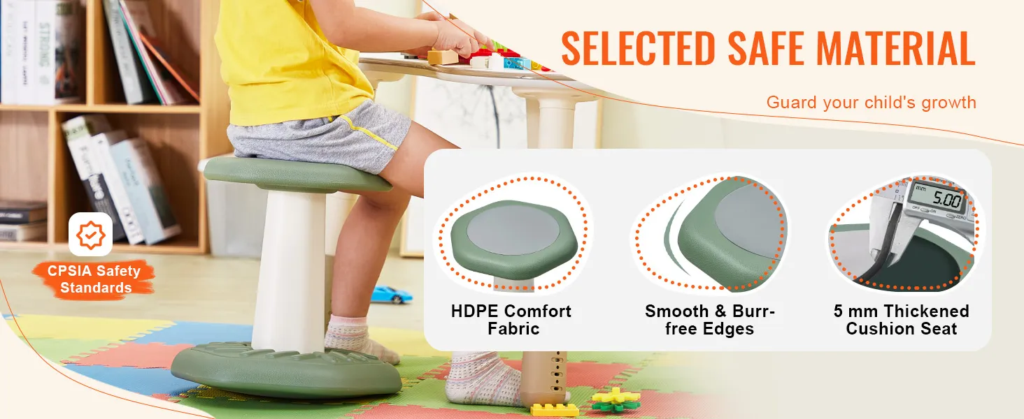 Made from high-quality, CPSIA-certified HDPE material, the active chair features smooth, burr-free edges, ensuring kids are safe from bumps or injuries. The 5mm thickened cushion adds comfort, making it more enjoyable for extended sitting.