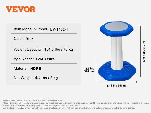VEVOR Kids Wobble Chair, Active Chair with Sponge Cushion, Wobble Stool Improves Focus, Posture and Calm Children, Ideal for Schools and Home, Age 7-14, Blue