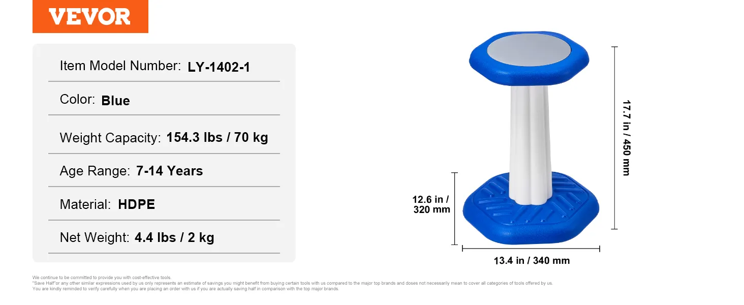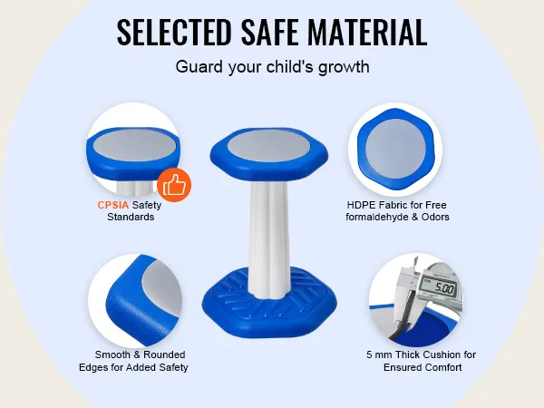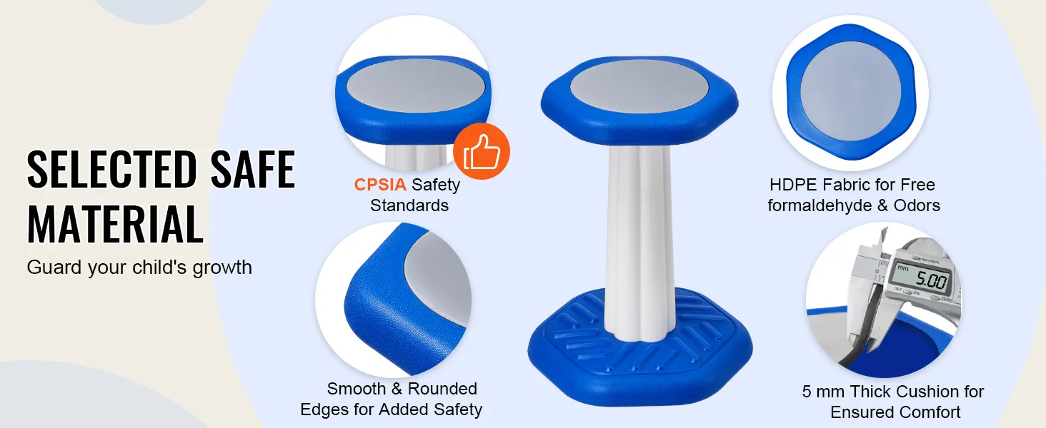 Built for Safety: Your child's safety is our top priority. Made from high-quality, CPSIA-certified HDPE material, this wobble stool features smooth, burr-free edges to prevent bumps and injuries. The 5mm thickened seat cushion ensures maximum comfort for long sitting sessions.