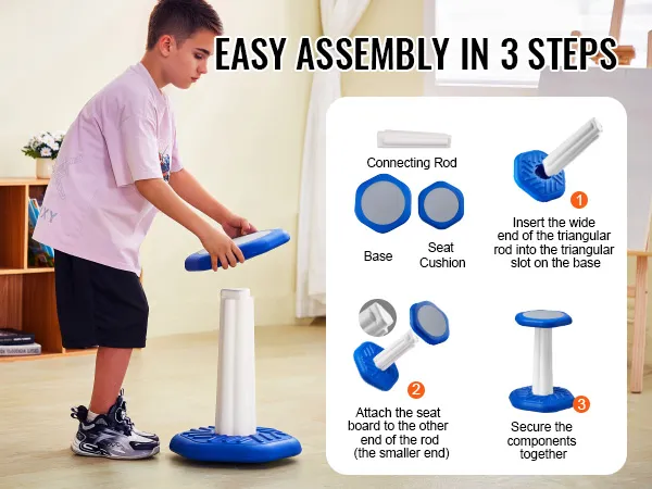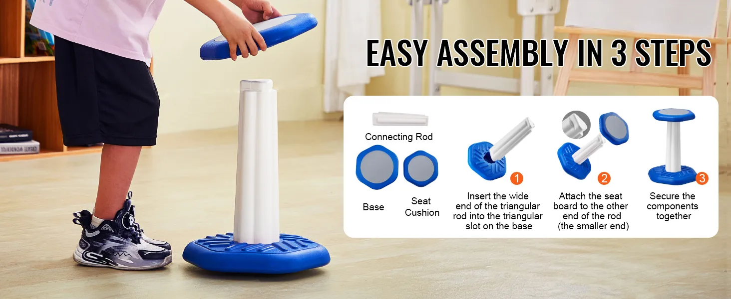 Easy to Assemble & Move: Assembling this kids wobble chair takes just three simple steps, reducing the hassle of traditional classroom seating. Its ergonomic design and lightweight build allow kids to move it themselves, encouraging more movement throughout the day and making sitting more appealing.
