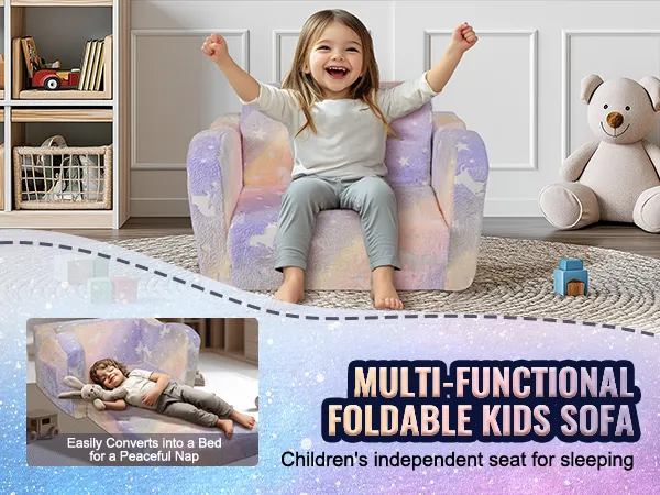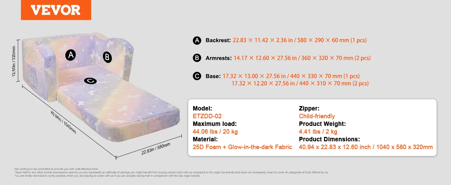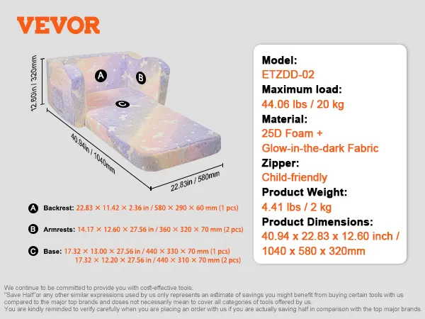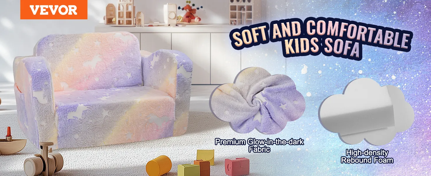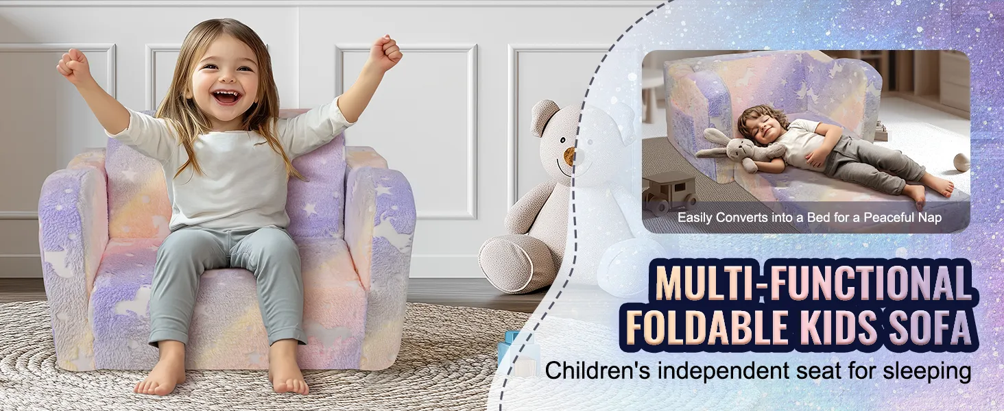 VEVOR Kinderbank 2-in-1 Omvormbare kinderbank naar relaxfauteuil, uitklapbare kinderbank, fauteuil, armleuningstoel, bed, opvouwbare kinderspeelbank, lichtgevend in het donker 104 x 58 x 32 cm