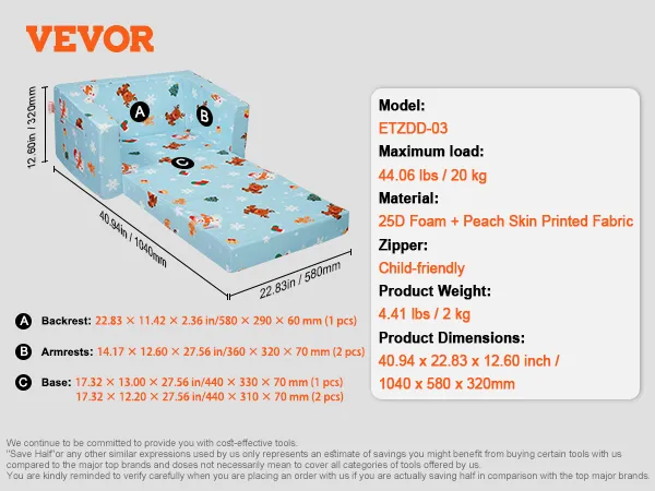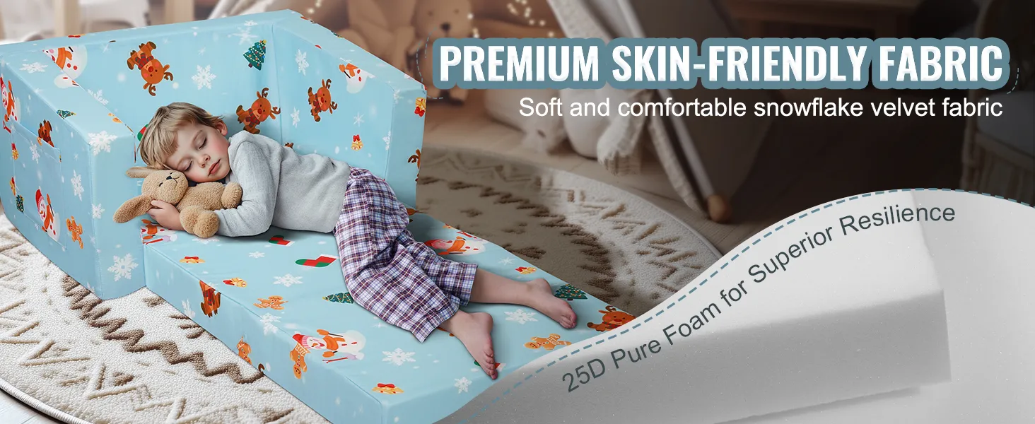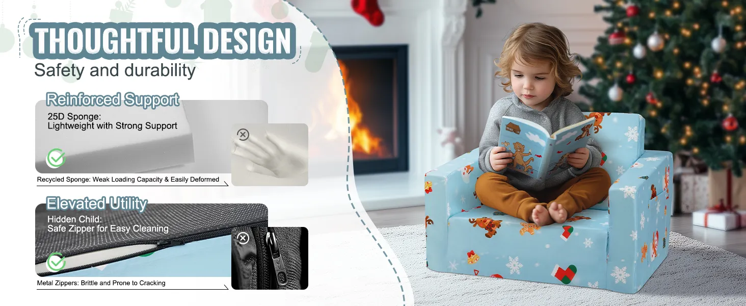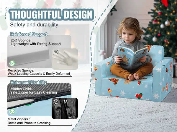 Verbeterde ondersteuningsconstructie: de kinderbank is gemaakt van lichtgewicht 25D-schuim met hoge dichtheid, dat uitstekende ondersteuning biedt, zodat kinderen zich gemakkelijk kunnen bewegen. Voor extra veiligheid gebruiken we ritsen van hoge kwaliteit die duurzaam en sterk zijn, zodat kinderen ze niet gemakkelijk kunnen scheuren of delen ervan kunnen inslikken.