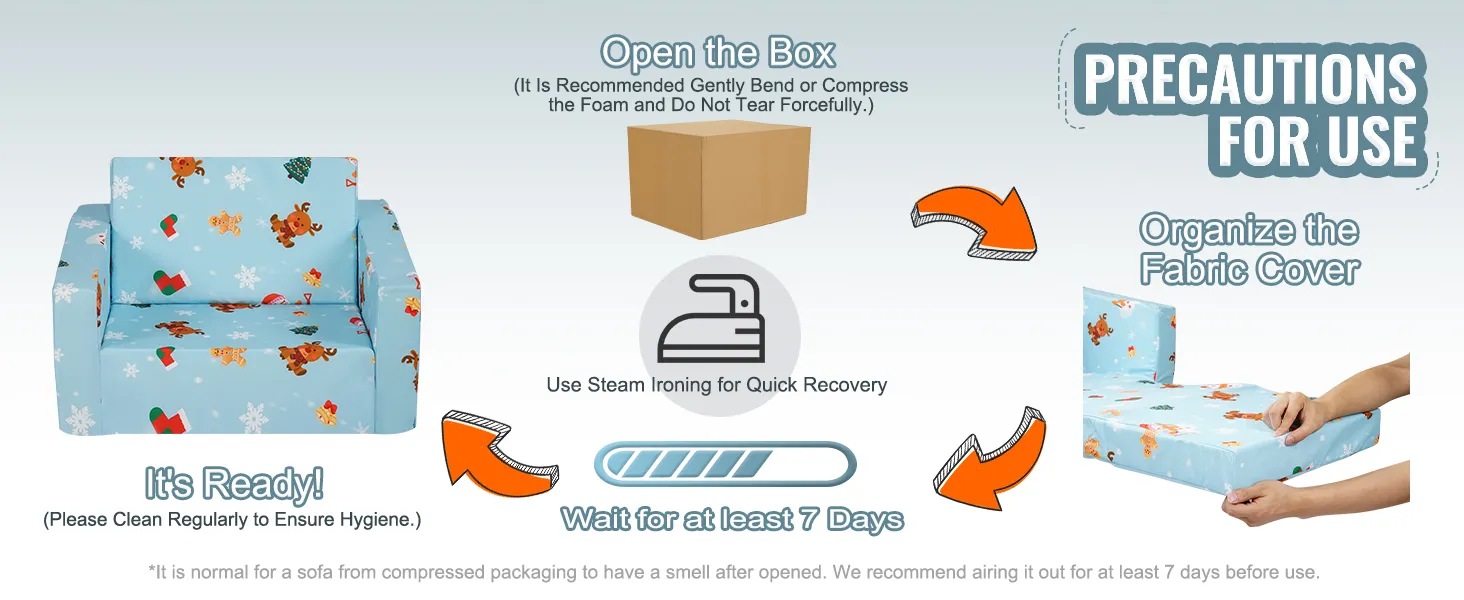Ontworpen voor kinderen: Deze babysofa is speciaal ontworpen voor kinderen en voldoet aan de CPC-normen en het HCN-veiligheidscertificaat. Voor de hoes gebruiken we een zachte, huidvriendelijke stof en de vulling is gemaakt van 25D-spons met hoge dichtheid voor een snelle rebound.