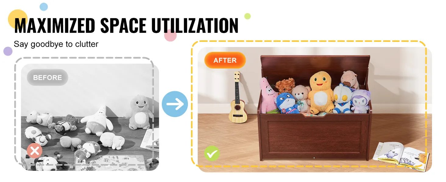 Multifunctional Storage: Our toy chest can serve as both a toy storage organizer and a kids bench, perfect for placing in entryways, bedrooms, and playrooms, filling every corner with fun!
