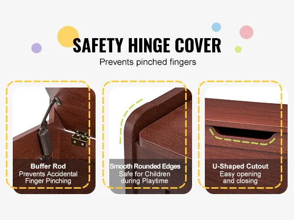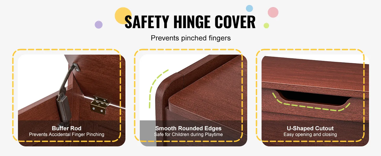 Complying with international CPSIA and US CPC standards, the rounded corners of this wooden toy chest prevent accidental bumps, ensuring a safe play environment.
