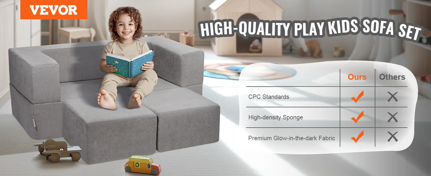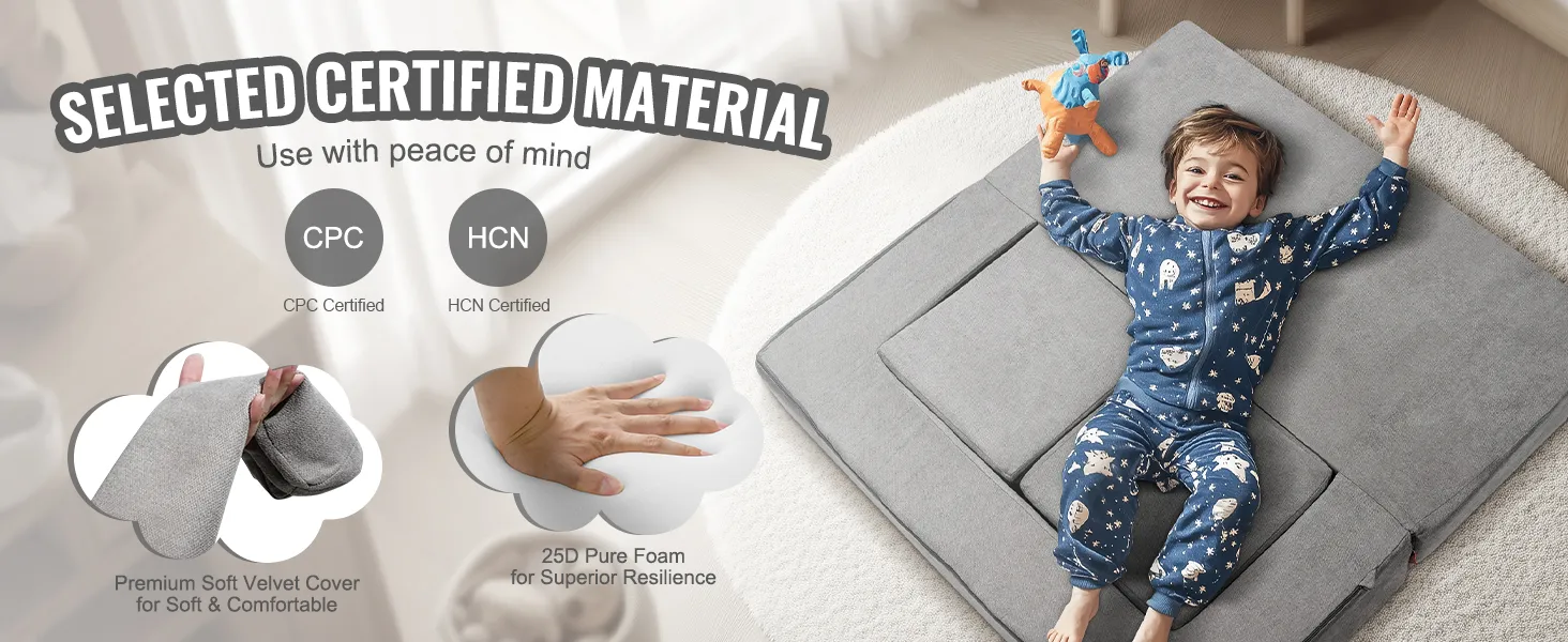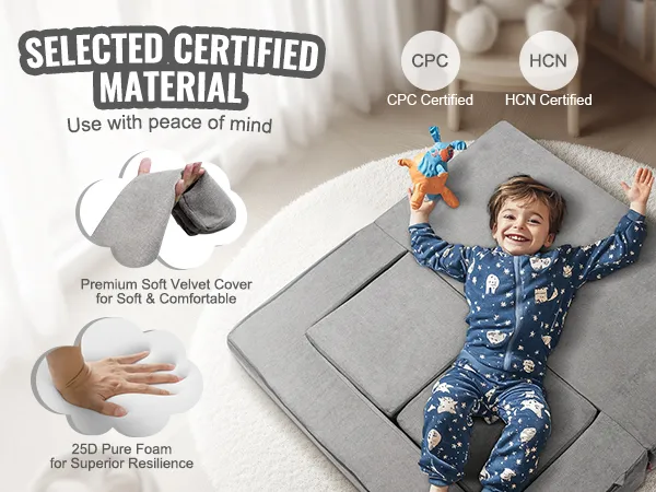 Huidvriendelijke materialen: de hoes van de Kids Nugget-bank is gemaakt van suède stof, die voldoet aan de CPC-normen en HCN-certificering, waardoor de veiligheid van kinderen wordt gegarandeerd. De vulling is gemaakt van hoogwaardige 25D-spons, zorgvuldig geselecteerd op kwaliteit en veiligheid.