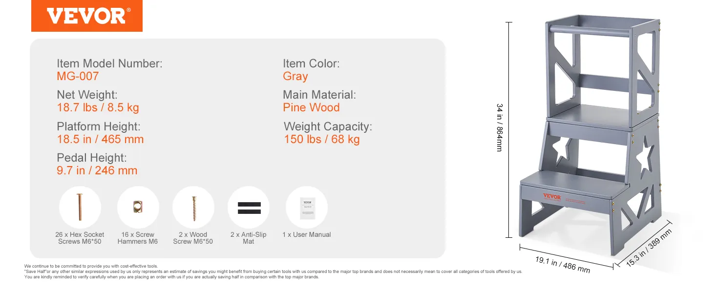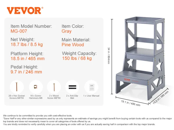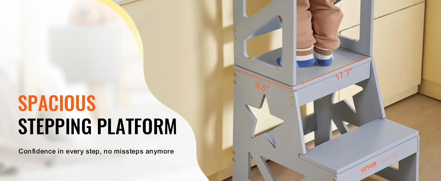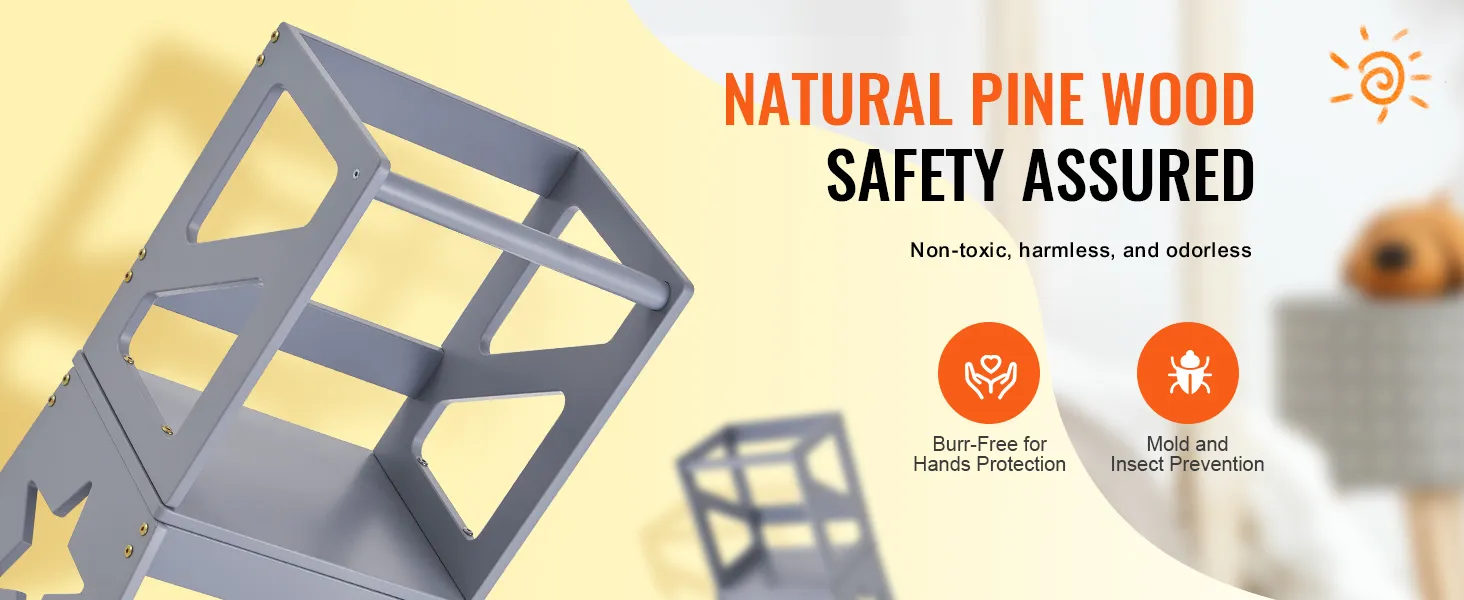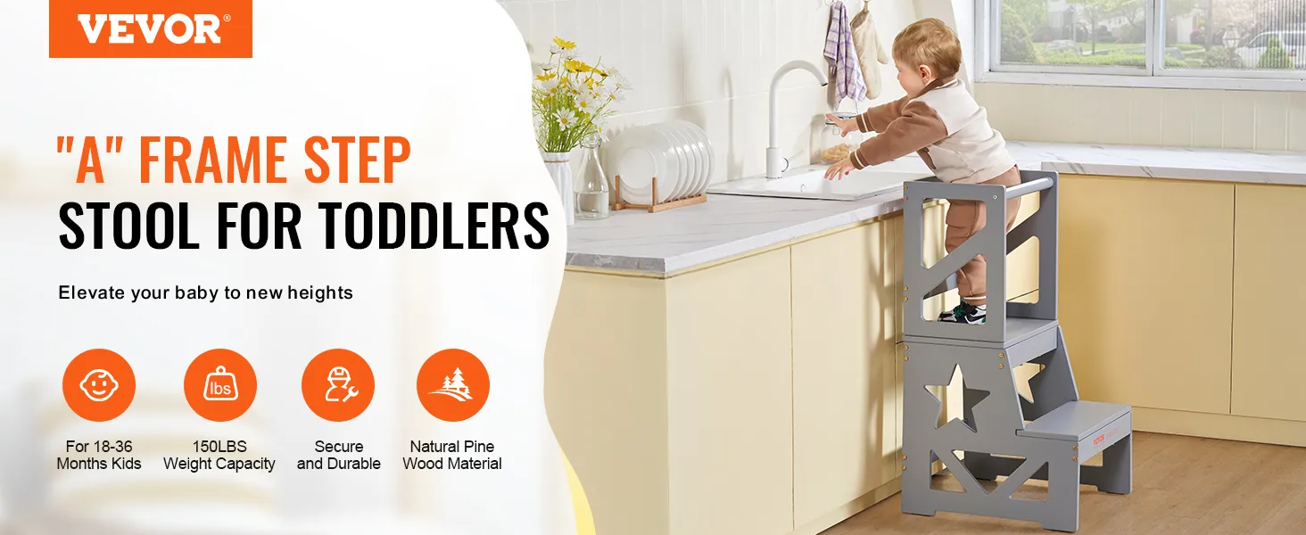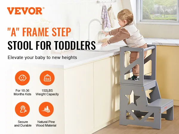 Bescherm elk groeimoment, de perfecte metgezel voor de ontdekkingstocht van kinderen! Het VEVOR peuteropstapje is gemaakt van natuurlijk grenenhout en is de toegangspoort tot het stimuleren van de onafhankelijkheid, ontdekking en groei van kinderen. Laat uw kleintje ontdekken, koken en nieuwe hoogten bereiken: een laadvermogen van 150 pond en een stevig "A"-frame.