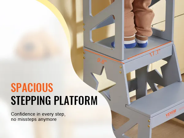 Sterk en stabiel laden: het ruime opstapplatform van 17,7 x 9,8 inch zorgt ervoor dat uw kinderen bij elke stap veilig op hun plaats blijven. Met een draagvermogen van 75 kg is dit stevige keukenleerkrukje de ideale metgezel voor peuters vanaf 18 maanden. Ontgrendel het potentieel van uw baby en moedig zijn zelfvertrouwen en onafhankelijkheid aan!