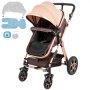 360° front wheel with double damping spring, diameter 17cm. Free inflatable rubber wheel, 29cm diameter. Move your baby smoothly to all regions and areas.