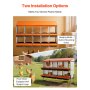 Flexibele installatie: Onze kippenhokken bieden twee installatiemogelijkheden: u kunt ze aan de muur bevestigen met behulp van de ophanggaten of op de grond plaatsen met behulp van de vier steunpoten. Alle benodigde onderdelen en duidelijke instructies voor een snelle en eenvoudige installatie zijn inbegrepen.