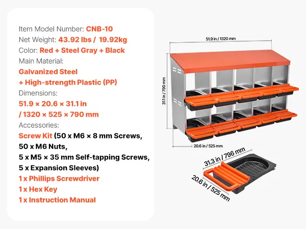 VEVOR Chicken Nest Box, 10-Compartment, 30 to 45 in Stable & Corrosion-Resistant Metal Nesting Boxes with Inclined Nesting Boxes, Bottom Holes & Resting Platform, Fit for Different Chicken Breeds