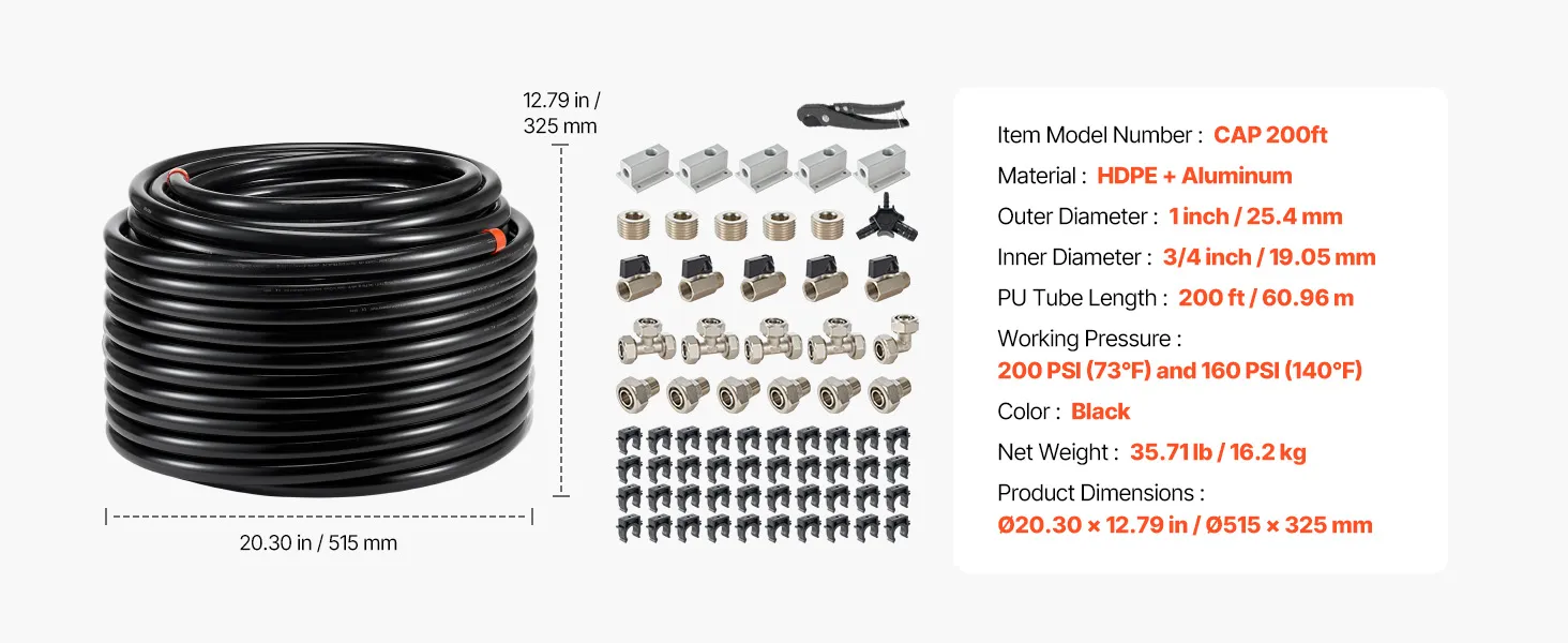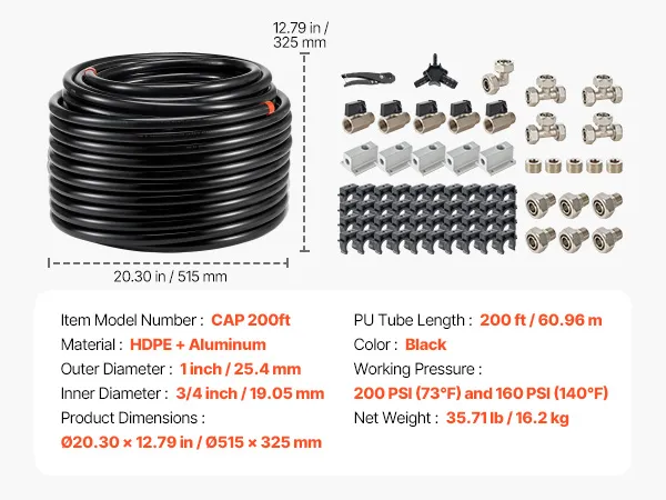 Ons persluchtleidingsysteem van 60,96 m x 19,05 mm is voorzien van een drielaagse HDPE aluminium HDPE-structuur, die uitstekende corrosieweerstand, hoge drukweerstand en superieure sterkte garandeert.