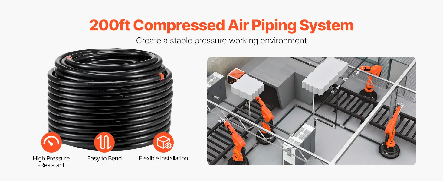 VEVOR Luchtcompressor Leidingkit, 60,96 m x 19,05 mm Persluchtslang, HDPE Aluminium Persluchtleidingsysteem, Eenvoudig te installeren, Persluchtleidingkit voor Garagewerkplaatsen, Zwart
