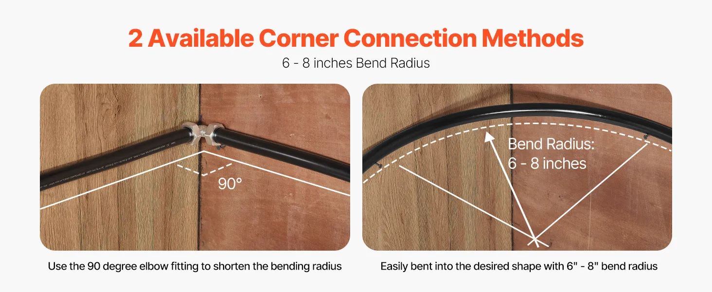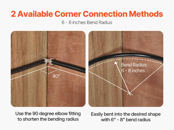 Flexibele installatiemogelijkheden: Dit persluchtslangsysteem biedt 2 flexibele hoekaansluitmogelijkheden. U kunt kiezen voor de 90 graden elleboogaansluiting voor een haakse verbinding of kiezen voor de radiusbuigmethode, waarmee u de slang eenvoudig kunt vormen met een buigradius van 6 tot 8 inch.