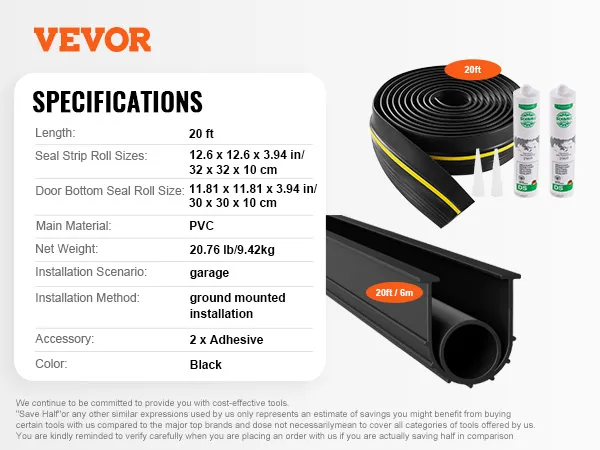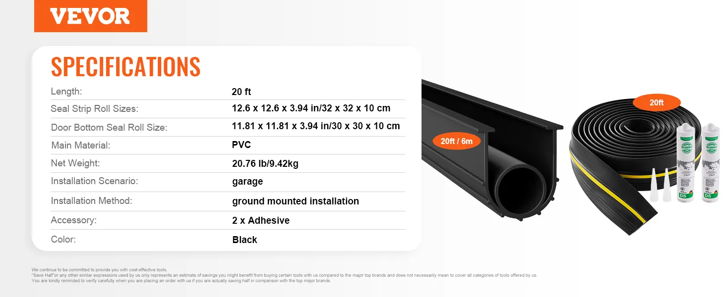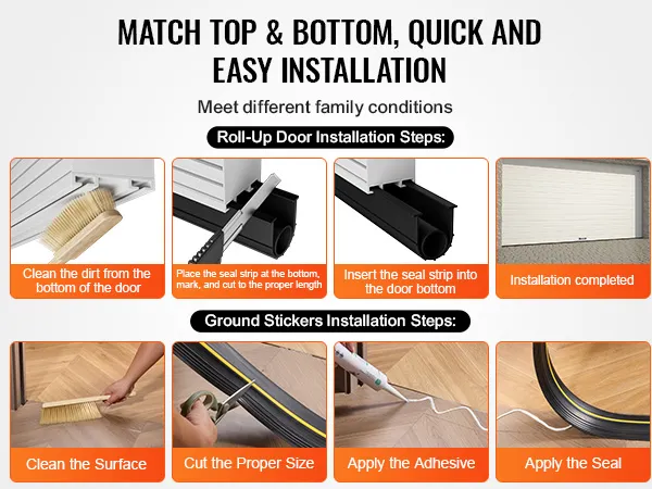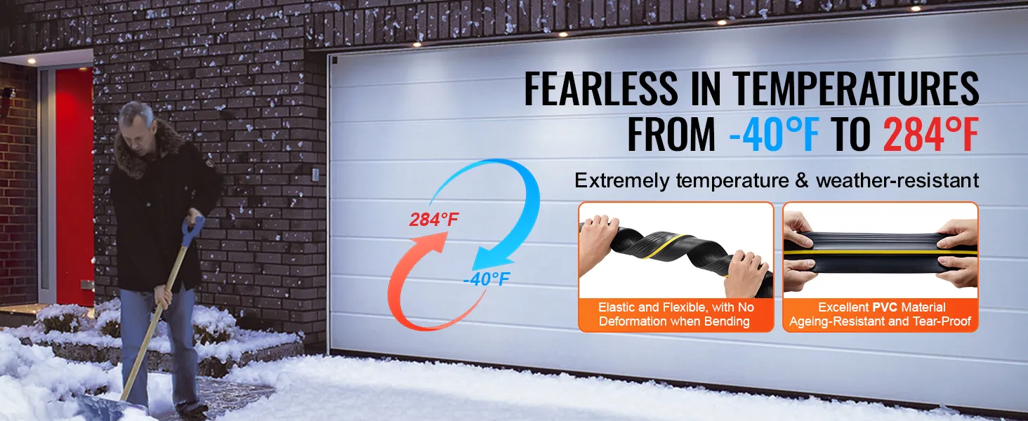 Hoogwaardig PVC-materiaal: onze garagedeurdrempels en vloerafdichtingen zijn gemaakt van verdikt PVC, dat duurzaam en weerbestendig is. Ze zijn bestand tegen extreme temperaturen van -40 °F tot 284 °F (-40 tot 140 °C) zonder te barsten.