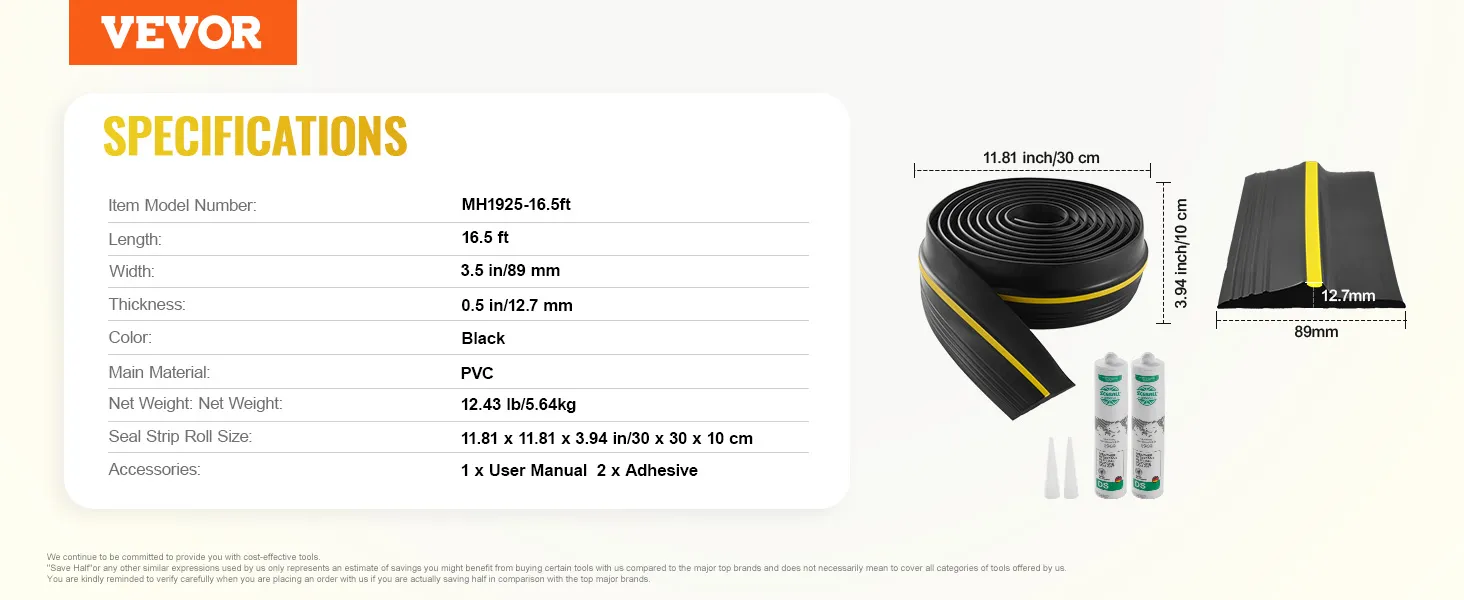 Security Yellow Tip Design: The yellow warning strip enhances visibility for your secure entry and exit. Anti-slip ridges reduce the risk of slipping, while the serrated base ensures excellent adhesion between the garage door threshold seal and sealants, garage doors, or floors.