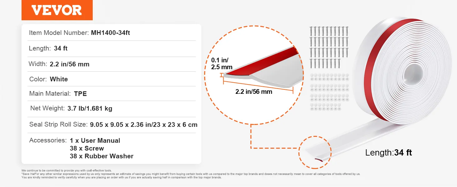 VEVOR boven- en zijafdichtingen voor garagedeuren