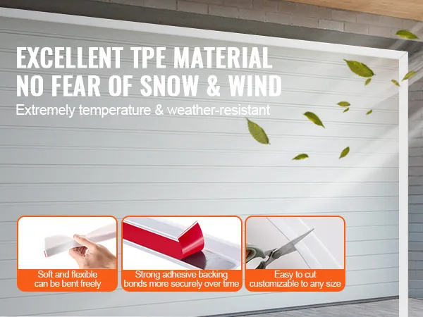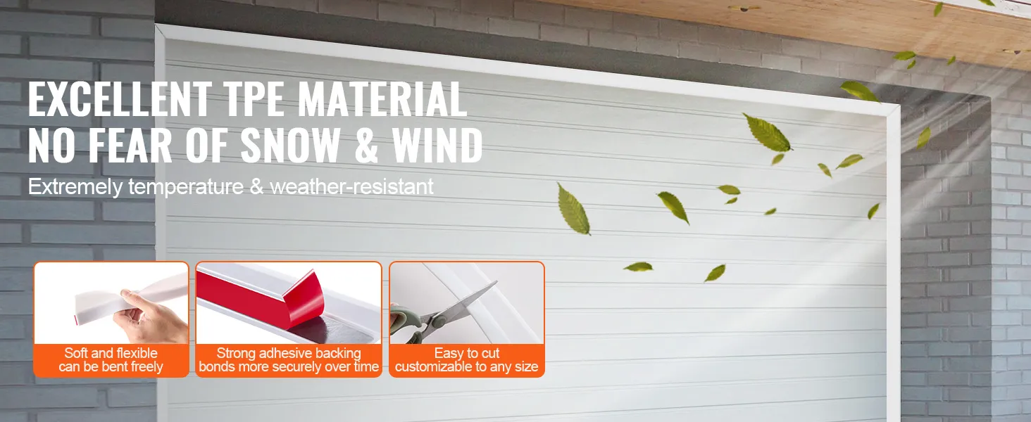 Hoogwaardig TPE-materiaal: onze garageafdichtingsstrips aan de boven- en zijkant zijn gemaakt van duurzaam TPE en blijven zacht en flexibel. Ze zijn gemakkelijk te snijden en behouden hun elasticiteit, zelfs bij extreem lage temperaturen. Ze garanderen uitstekende afdichtingsprestaties en passen op deuren van verschillende afmetingen.