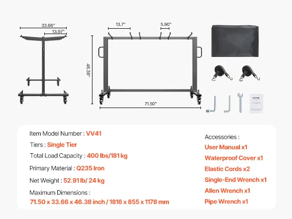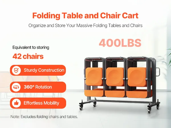 Productafmetingen: De maximale draagkracht van onze opvouwbare stoelenkar is 1816 mm / 71,5 inch, de breedte 855 mm / 33,66 inch en de hoogte 1178 mm / 46,38 inch. Het maximale draagvermogen van onze opvouwbare stoelenkar is 181 kg / 400 lbs. Dit staat gelijk aan het opbergen van 42 stoelen (let op: klapstoelen zijn niet inbegrepen) en biedt enorme opbergruimte terwijl u ruimte bespaart.