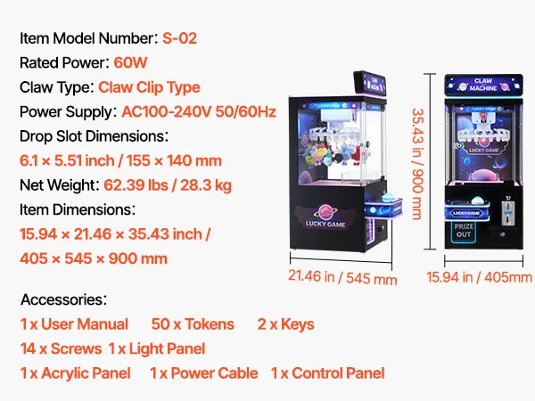 Eenvoudig onderhoud: Inclusief twee sleutels voor gemakkelijke toegang tot de munten en interne onderdelen. Deze grijpmachine garandeert een betrouwbare werking en langdurig speelplezier, zowel voor privé- als commercieel gebruik.