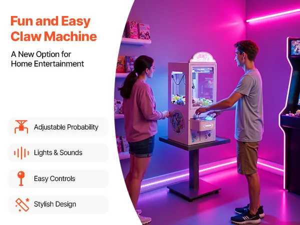 Met zijn stijlvolle nieuwe uiterlijk past deze speelgoedgrijpmachine perfect in speelkamers thuis, op feestjes, in speelhallen of in wachtruimtes van bioscopen, en vormt een leuke en opvallende blikvanger in elke ruimte.
