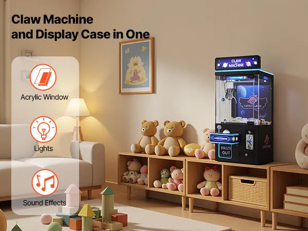 Met zijn stijlvolle nieuwe uiterlijk past deze speelgoedgrijpmachine perfect in speelkamers thuis, op feestjes, in speelhallen of in wachtruimtes van bioscopen, en vormt een leuke en opvallende blikvanger in elke ruimte.