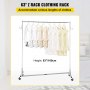 VEVOR Kledingrek 136 kg draagvermogen, industriële standaard 60 x 159 x 160 cm, industriële kledingstang, kledingwagen, zware belasting, commerciële Z-vormig wasrek zilver (1 stuk 1 laag)