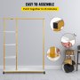 De perfecte combinatie van goudkleurig metaal en een witte MDF-plaat maakt dit kledingrek op wielen chic en prachtig. Het kan voor meerdere doeleinden worden gebruikt en kan zelfs worden gebruikt voor thuis of commercieel gebruik. Het is geschikt voor kledingwinkels, garderobes, werkruimten, boetieks, enz.