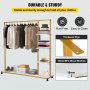Gemaakt van verdikt Q235-ijzer en massief MDF-hout met een spray-afwerking die roestbestendige bescherming en duurzaamheid garandeert. Ons kledingrek is sterk genoeg om tot 81,65 kg kleding te dragen zonder te wiebelen of te buigen.