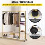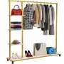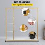 De perfecte combinatie van goudkleurig metaal en een witte MDF-plaat maakt dit kledingrek op wielen chic en prachtig. Het kan voor meerdere doeleinden worden gebruikt en kan zelfs worden gebruikt voor thuis of commercieel gebruik. Het is geschikt voor kledingwinkels, garderobes, werkruimten, boetieks, enz.
