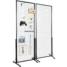 VEVOR Rasterwandpanelen (898 x 400 x 1798 mm) 2 stuks. Rolbare displaystandaard met 20 haken, displayplanken van koolstofstaal. Kunsttentoonstellingsrek voor het opbergen van decoratie.