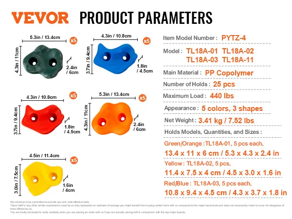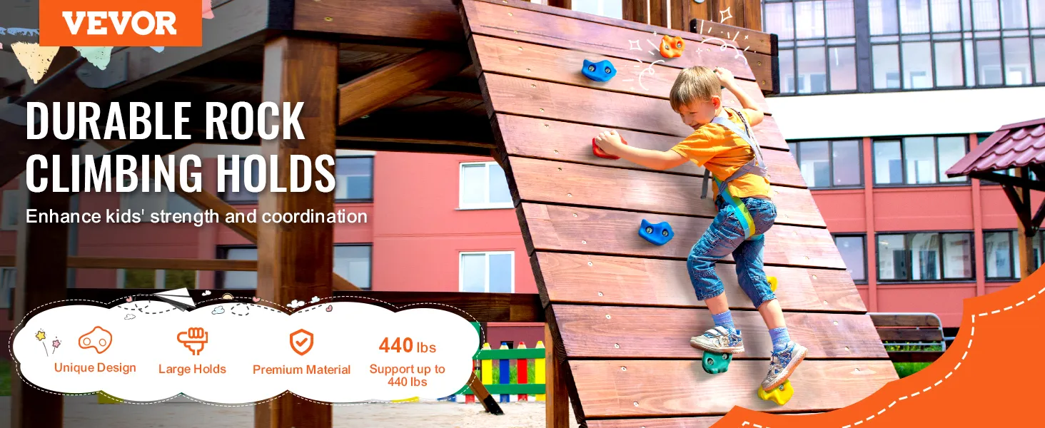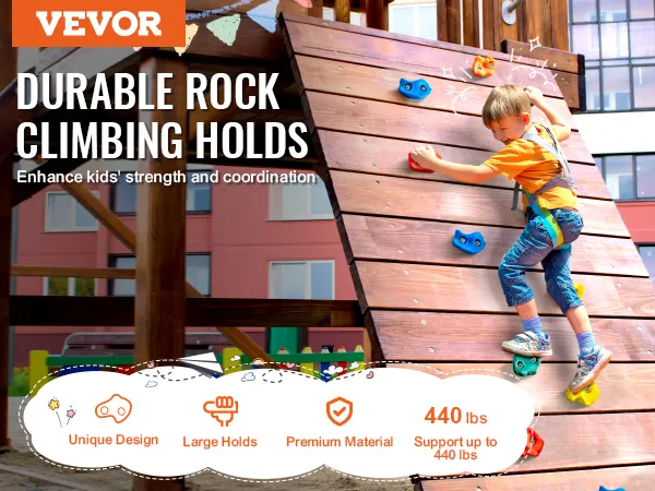 Deze grepen zijn duurzaam. Ze zijn gemaakt van hoogwaardig PP-copolymeer. De meegeleverde hardware en schroeven zorgen ervoor dat ze stevig zijn. Ze kunnen gewichten tot 440 lbs dragen. Dit maakt ze geschikt voor zowel kinderen als volwassenen. Weerbestendig materiaal draagt bij aan hun betrouwbaarheid. Deze grepen zijn gebouwd om lang mee te gaan en slijtage te weerstaan. Veilige installatie zorgt ervoor dat klimmers zich veilig en stabiel voelen. Deze stabiliteit is belangrijk voor het opbouwen van vertrouwen bij jonge klimmers. U kunt erop vertrouwen dat de VEVOR rotsklimgrepen een veilige klimervaring bieden voor iedereen.