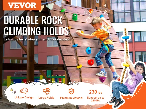 De verschillende vormen en maten bieden verschillende uitdagingen, waardoor kinderen worden aangemoedigd om probleemoplossers te worden. Klimmen vergroot ook het zelfvertrouwen en de moed, omdat kinderen obstakels overwinnen en nieuwe hoogten bereiken. De VEVOR Rock Climbing Holds zijn een veilige en leuke manier voor kinderen om hun fysieke en mentale capaciteiten te verbeteren.