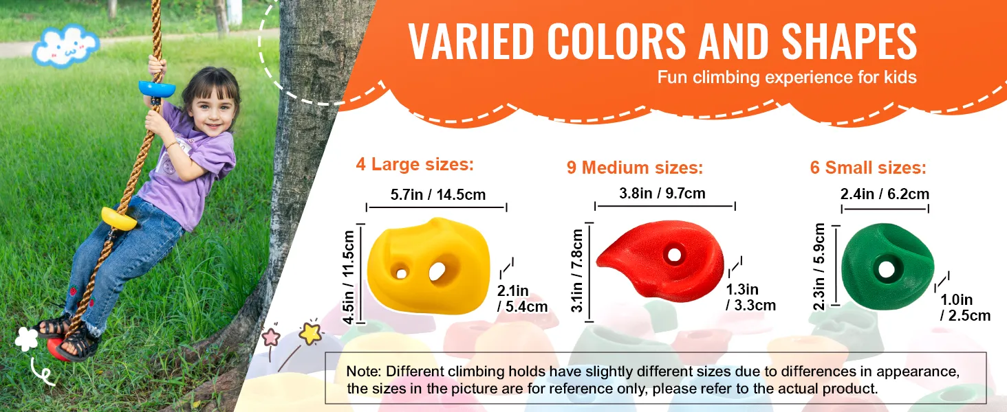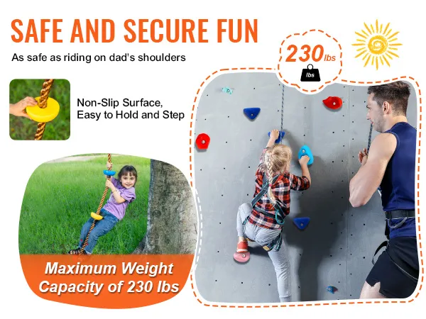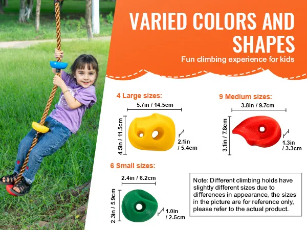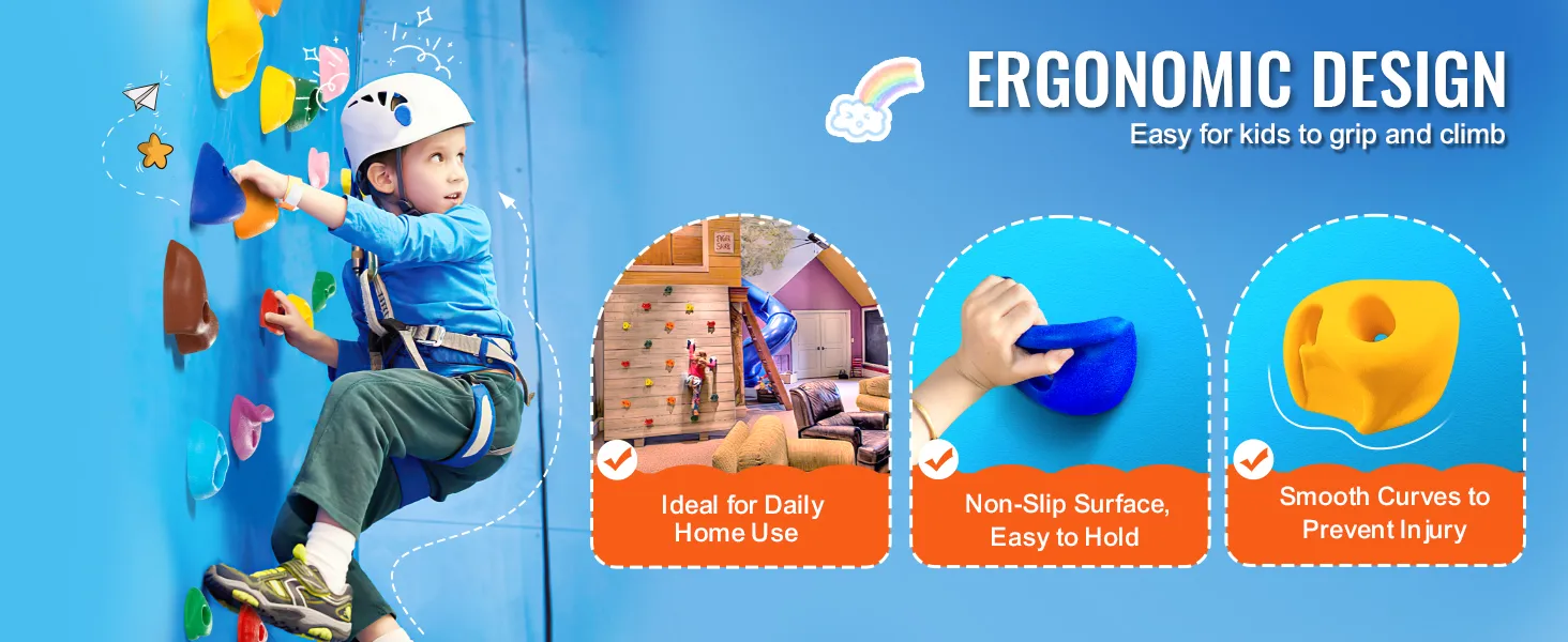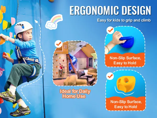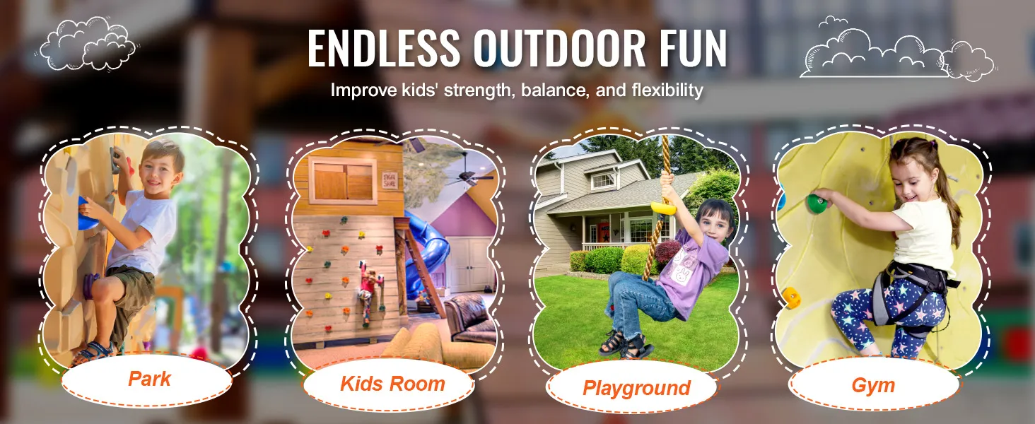 Hoe makkelijk is het om de VEVOR Rock Climbing Holds op te zetten? Het is zo simpel. Met de meegeleverde schroeven en accessoires heb je ze in een mum van tijd geïnstalleerd. Dit gemak laat je je richten op belangrijkere dingen, zoals ervoor zorgen dat je kinderen plezier hebben en actief blijven. Het eenvoudige installatieproces laat je snel elke binnen- of buitenruimte veranderen in een leuk klimgebied.