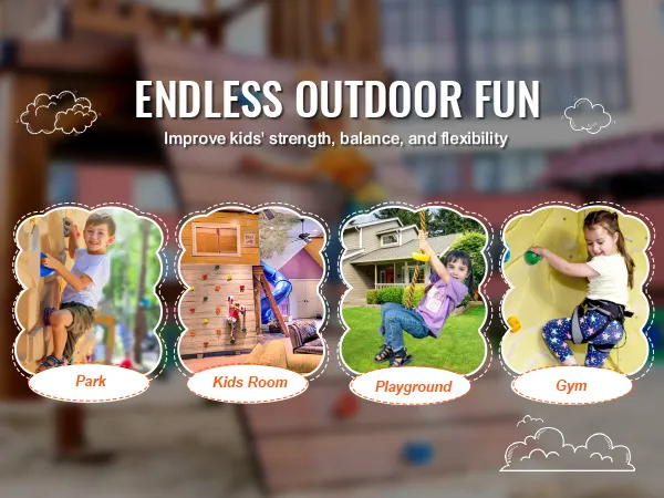 Deze kenmerken trekken op natuurlijke wijze de aandacht van kinderen en moedigen hen aan om te klimmen. De verschillende vormen bieden verschillende uitdagingen op het gebied van grijpen en stappen, waardoor kinderen geïnteresseerd en gemotiveerd blijven in het klimmen. Dit is een uitstekende manier om hun focus te verleggen van elektronische apparaten naar fysieke activiteit, wat een gezondere levensstijl bevordert.