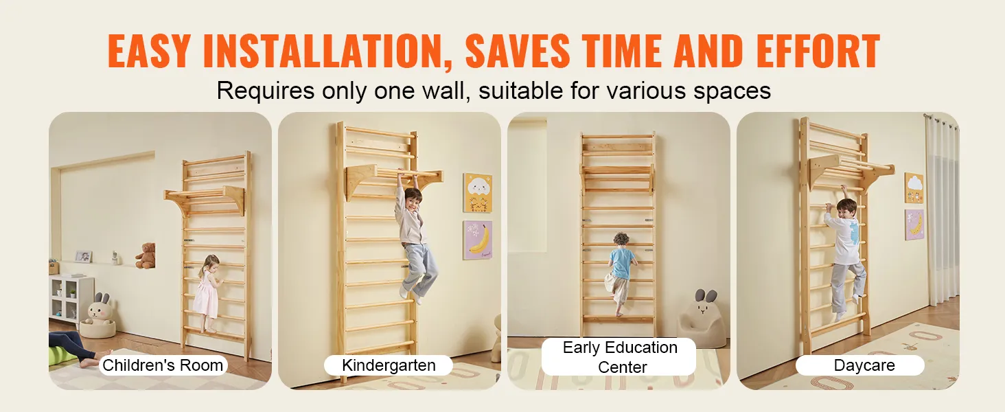 Easy Installation: Our Swedish wall is simple and quick to install with a detailed installation guide. It can be set up in children's bedrooms, early learning centers, or preschools, making it versatile for a variety of spaces.