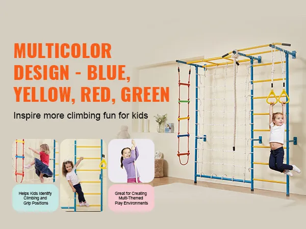Featuring a multi-colored design, this indoor kids gym is visually appealing to children. The different colors and patterns help kids easily locate handholds and steps, promoting secure climbing while sparking their imagination. Parents can create fun indoor play themes with this colorful addition.