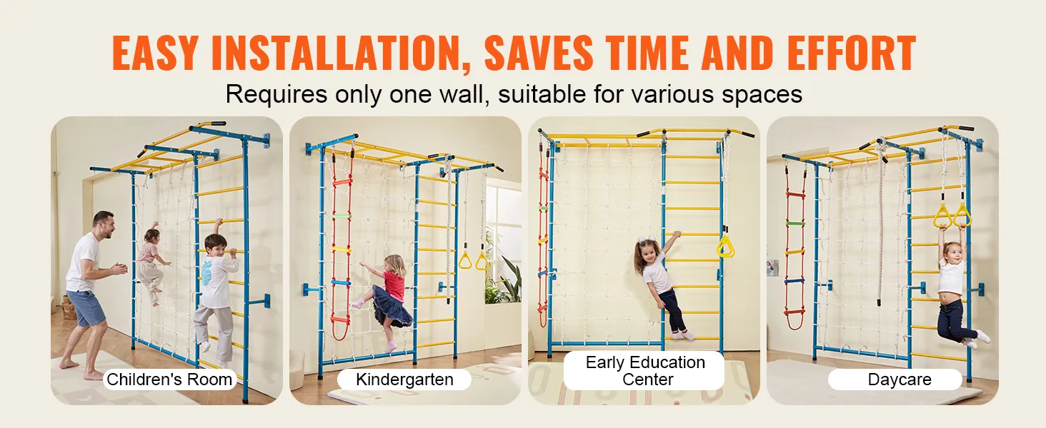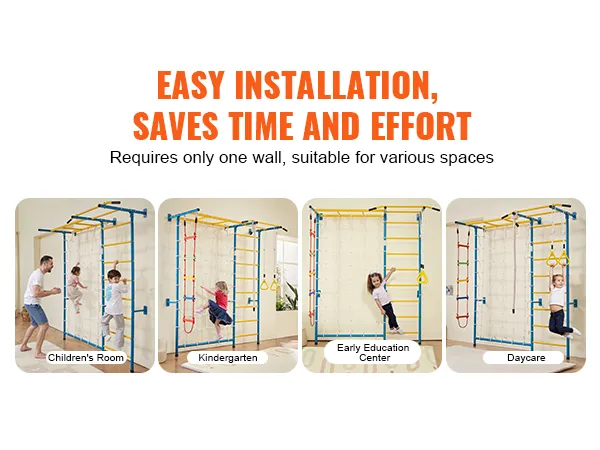Easy Installation: Our kids gym is simple and quick to install with a detailed installation guide. It can be set up in children's bedrooms, early learning centers, or preschools, making it versatile for a variety of spaces.