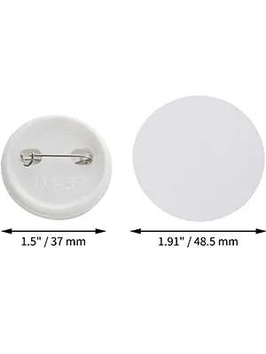 De diameter van het knopgedeelte is 1-1 / 2 "(37 mm). Elke set bevat een hoes, een film en een plastic basis met de pin, in totaal 500 sets, die aan uw eisen kunnen voldoen.