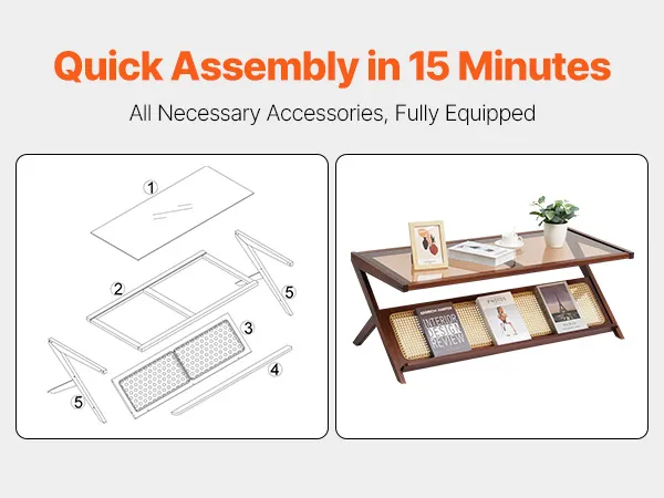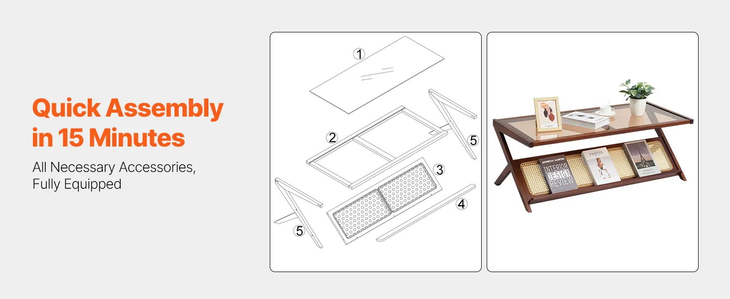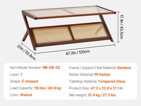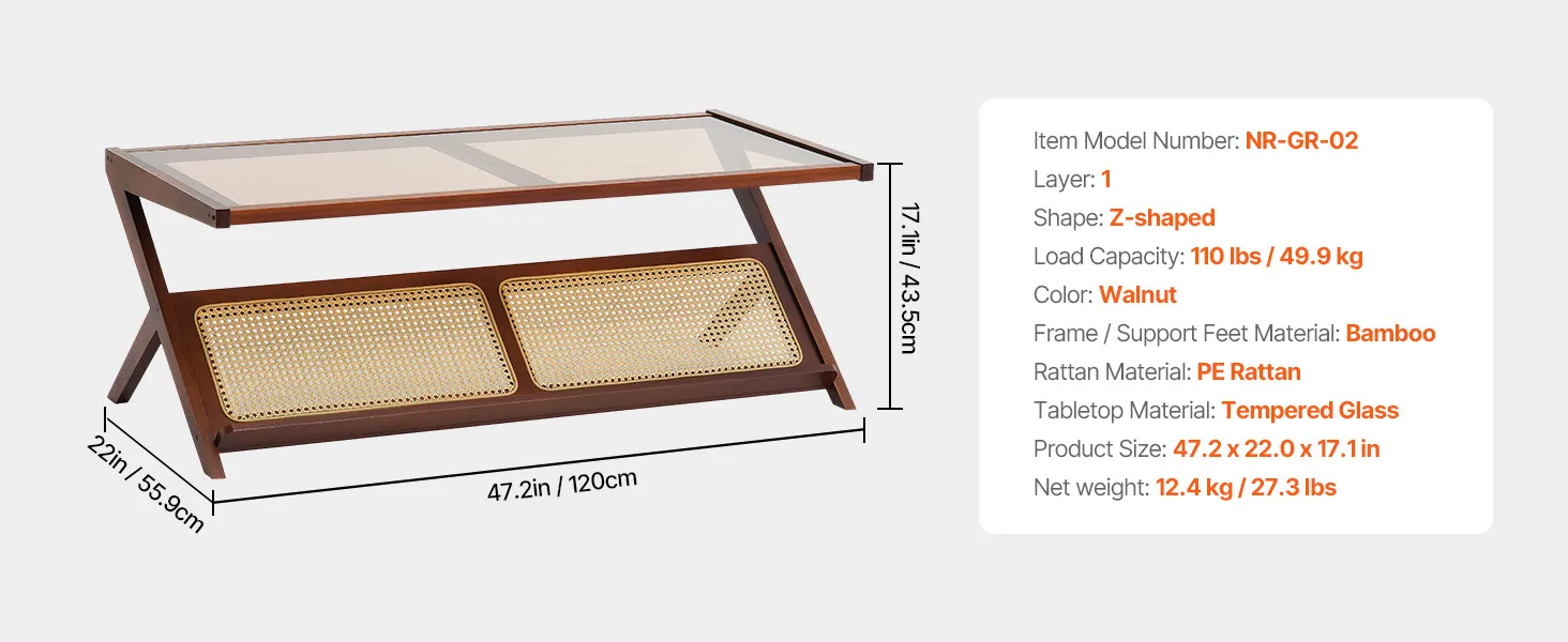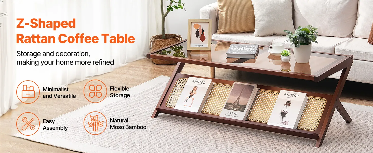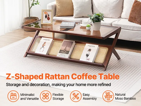 Deze Z-vormige rotan salontafel combineert een bohemien stijl met modern design. Het beschikt over een tafelblad van gehard glas, ondersteunt maximaal 100 pond en is eenvoudig te monteren en schoon te maken. Ideaal voor elke kamer!