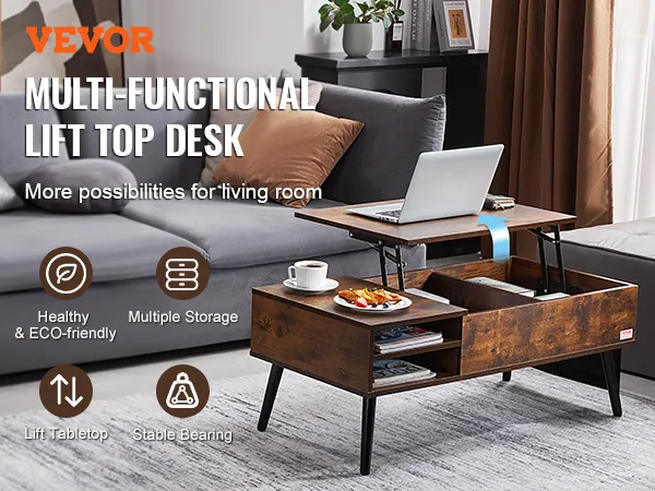 Featuring a high-quality metal structure, this adjustable lift top coffee table allows smooth and noise-free height adjustments. Made from selected high-quality particleboard, it remains stable and secure after proper assembly.