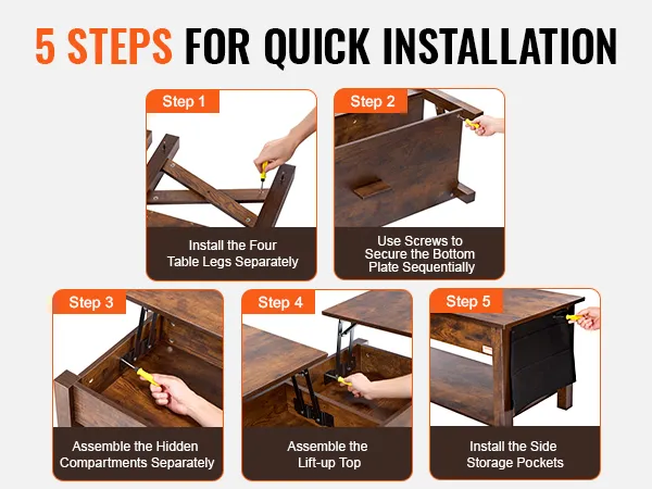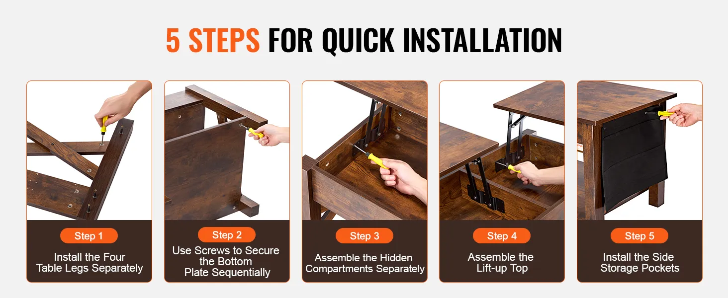 Easy Installation & Operation: This adjustable lift up coffee table comes with all necessary parts, tools, and assembly instructions with diagrams. Simply follow the instructions for easy and straightforward assembly, suitable for both beginners and experienced users.