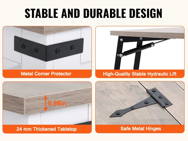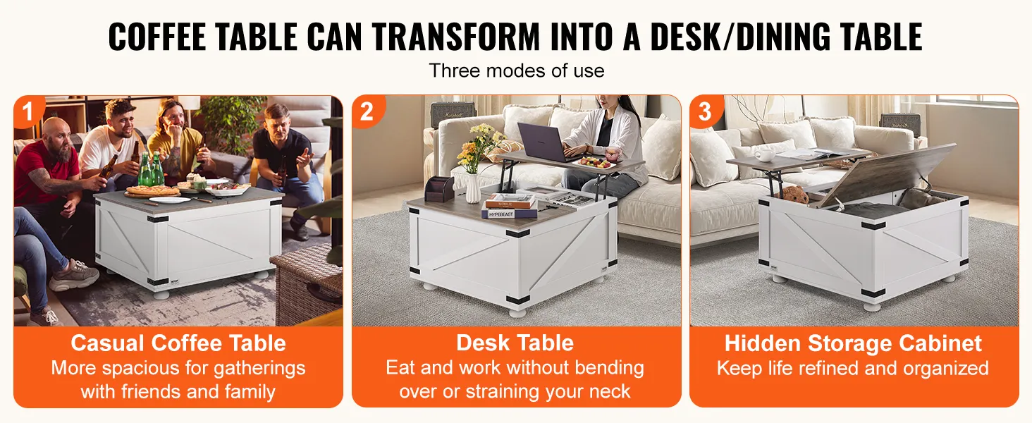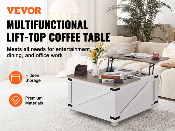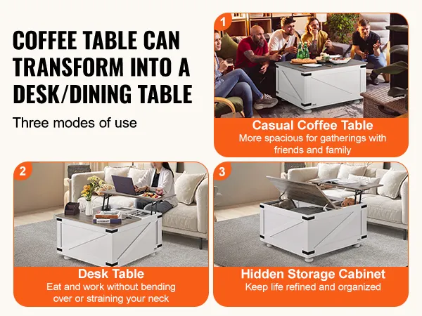 • Lift-Top Design: This lift top coffee table is equipped with a high-quality hydraulic lift mechanism, ensuring smooth and safe elevation. You can sit comfortably on the sofa and raise the tabletop to your preferred height, effortlessly transforming it into a laptop desk, perfect for working on your computer or enjoying meals.