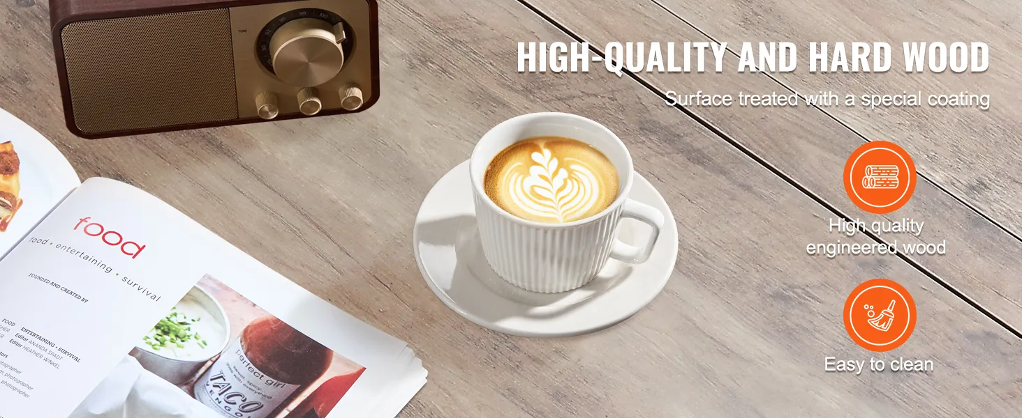 • Sturdy and Durable Construction: Built with premium wood, the thick tabletop and sturdy legs offer exceptional load-bearing capacity, supporting up to 44 lbs. Even under heavy loads, the table remains stable without wobbling. The water-resistant and scratch-proof surface ensures long-term durability, making it ideal for everyday use.