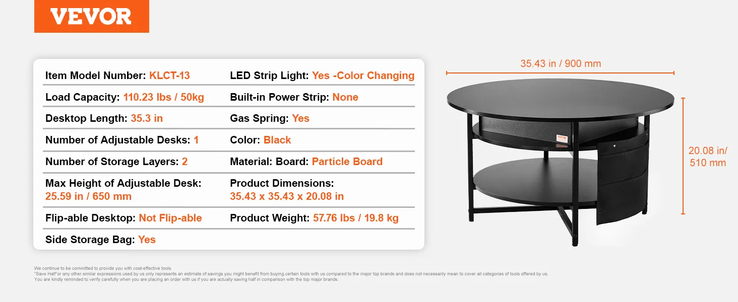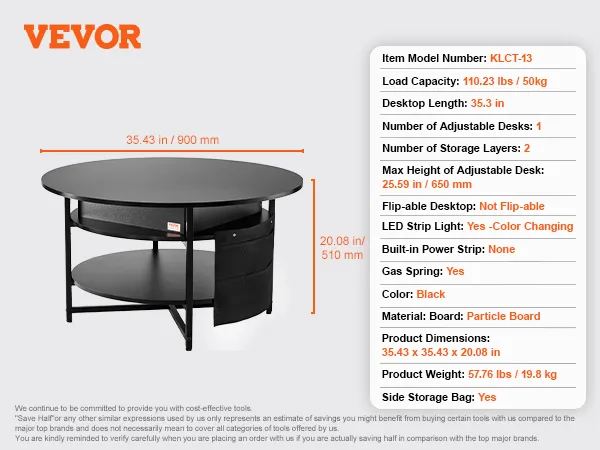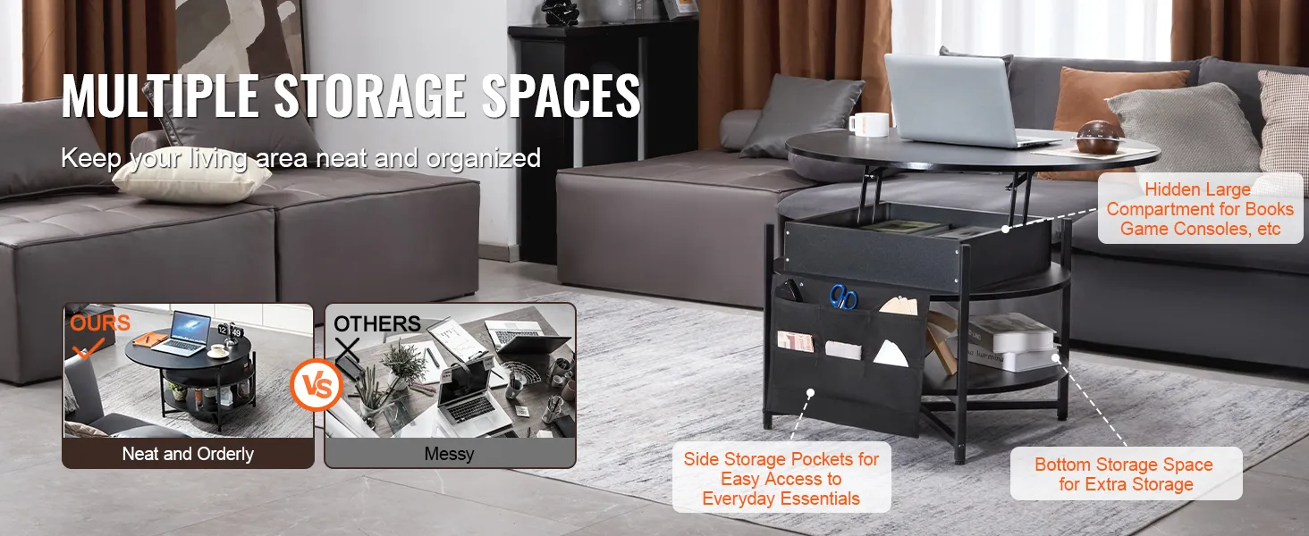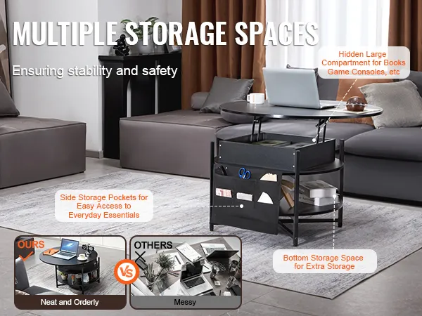 VEVOR Lift Top Coffee Table, 35.3 in Round Coffee Table with Extra Storage Pockets, Pop Up Coffee Table for Living Room, Black VEVOR Lift Top Coffee Table, 35.3 in Round Coffee Table with Extra Storage Pockets, Pop Up Coffee Table for Living Room, Black