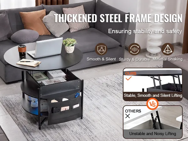 Featuring a high-quality metal structure, this adjustable lift top coffee table allows smooth and noise-free height adjustments. Made from selected high-quality particleboard, it remains stable and secure after proper assembly.